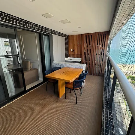 Ao ficar noVilla Costeira Flat, os hóspedes têm acesso para área de estar e varanda equipados com controle de temperatura.